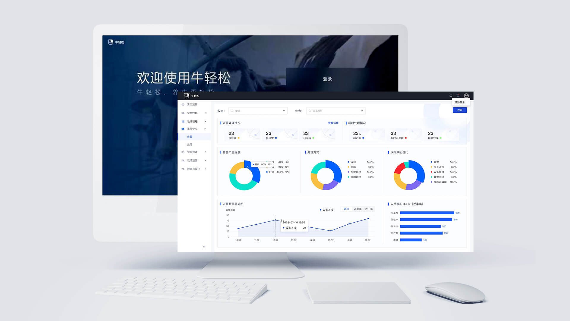 牛輕松對牧場的智能風機系統(tǒng)、噴淋系統(tǒng)、視頻監(jiān)控系統(tǒng)、智能照明系統(tǒng)、能源監(jiān)測系統(tǒng)、環(huán)境監(jiān)測系統(tǒng)、工單系統(tǒng)等進行統(tǒng)一的管理與聯(lián)動配置。產(chǎn)品的應用實現(xiàn)牧場內(nèi)所有設(shè)備的一鍵全連、協(xié)同聯(lián)動及可視化管理,輔助牧場能夠綠色的、高效的、可持續(xù)盈利的長足發(fā)展。